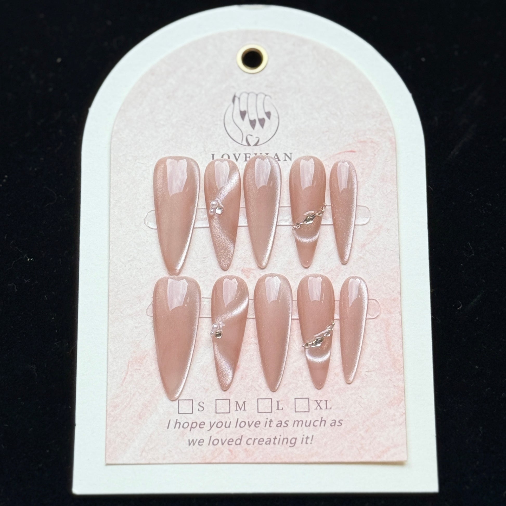 Add a soft romantic touch with *Rose Glow*. This nude pink shimmer press-on nail set is enhanced with delicate crystal accents for a subtle yet luxurious sparkle. Perfect for bridal press-on nails, elegant evening looks, and high-end everyday manicures. Handcrafted to deliver a salon-perfect finish, these luxury press-on nails offer effortless beauty and long-lasting wear.