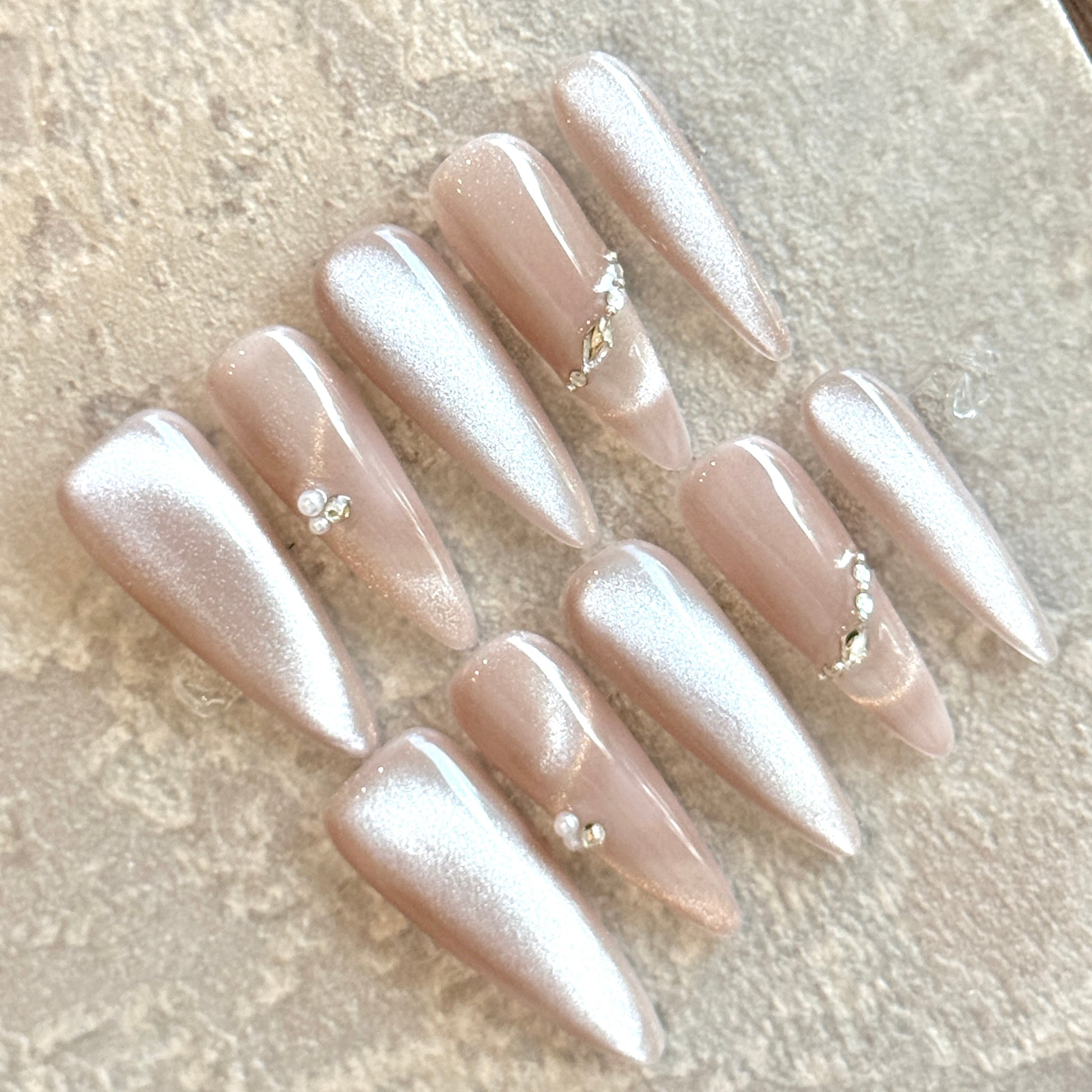 Rose Glow – Nude Pink Shimmer Press-On Nails with Crystal Accents